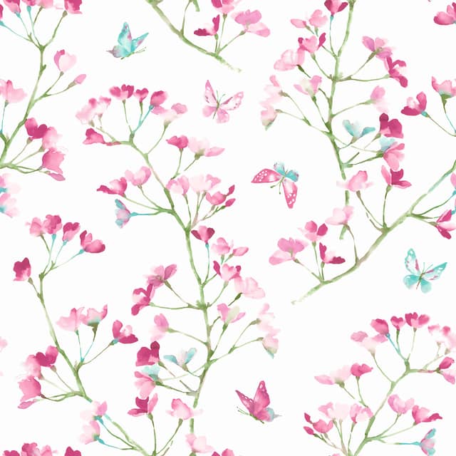 Pobierz teksturęWzór tapety z kolekcji A Perfect World autorstwa amerykańskiej firmy York Wallcoverings przedstawia subtelne akwarelowe kwiaty i motylki na białym tle. Tapeta jest idealna do pokoju dziewczynki.
