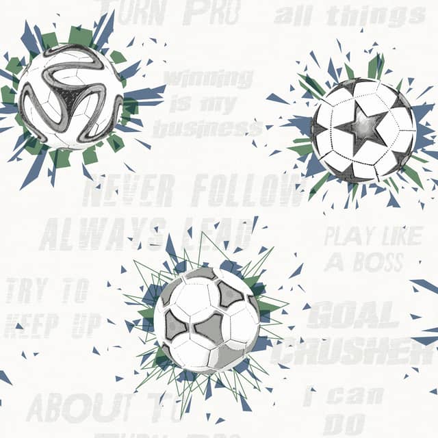 Pobierz teksturęTapeta z dziecięcej kolekcji A Perfect World autorstwa amerykańskiej firmy York Wallcoverings inspirowana piłką nożną. Doskonale nada się do aranżacji pokoju chłopca.