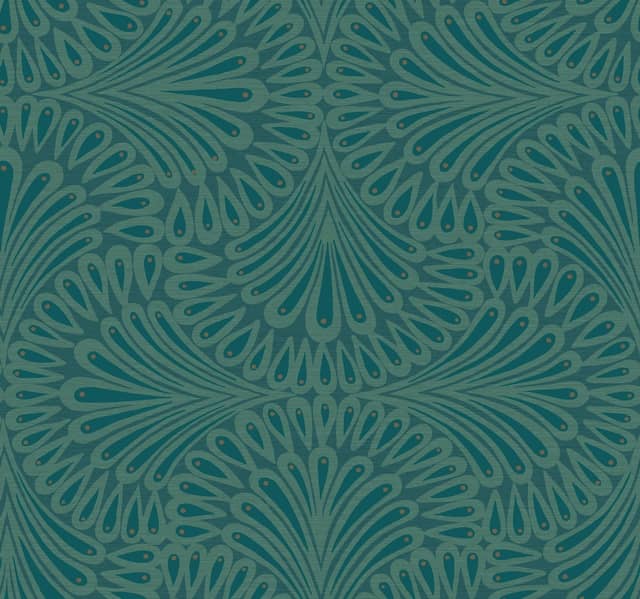 Pobierz teksturęWzór tapety z kolekcji Deco firmy York Wallcoverings autorstwa znanej amerykańskiej designerki Antonina Vella nawiązuje do legendarnego zjawiska życia nocnego w stylu Art Deco, przypomina pawi ogon. Pasja do traw i tropikalnych motywów ma związek z nowojorskim klubem nocnym "Cafe Society", otwartym w latach 30-tych. Tapeta stanowi ciekawy sposób na uzupełnienie aranżacji wnętrza, wypełniając je pięknymi kolorami.