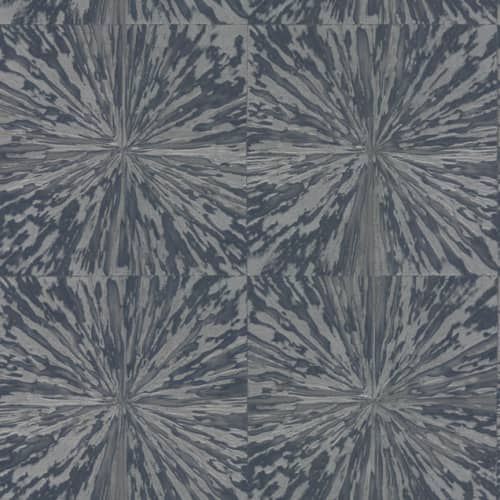 Elegancka, połyskująca srebrem z dodatkiem niebieskiego okładzina z wypukłym, geometrycznym wzorem przypominającym rozchodzące się promienie na pewno podbije serca miłośników nowoczesnego glamouru. Pięknie rozświetli i powiększy optycznie wnętrze.