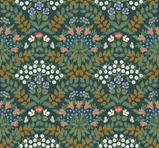 Pobierz teksturęGęsty gobelinowy wzór przedstawiający kwiaty układające się w szerokie rozłożyste wachlarze. Tapeta zaprojektowana przez znakomitą i cenioną ilustratorkę Annę Bond załozycielkę marki RIFLE PAPER CO, która w kolaboracji z amerykańskim producentem York Wallcoverings stworzyła piękną kolekcję tapet. Nasycone głębokie barwy. Piękny wzór przedstawiający roślinność. Klasa i ponadczasowa elegancja.