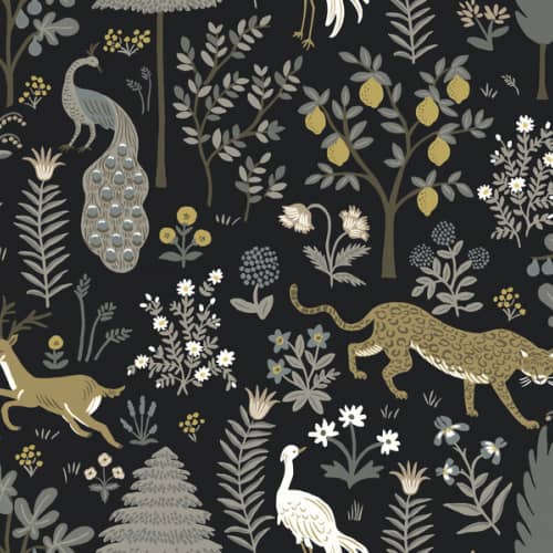 Tapeta zaprojektowana przez znakomitą i cenioną  ilustratorkę Annę Bond załozycielkę marki RIFLE PAPER CO, która w kolaboracji z amerykańskim producentem York Wallcoverings stworzyła piękną kolekcję tapet. Urocza i zjawiskowa tapeta w pięknych nasyconych głębokich barwach. Piekny wzór przedstawiający roślinność, wśród której znajduje się zwierzyna. Ptaki dzikie koty, sarny.