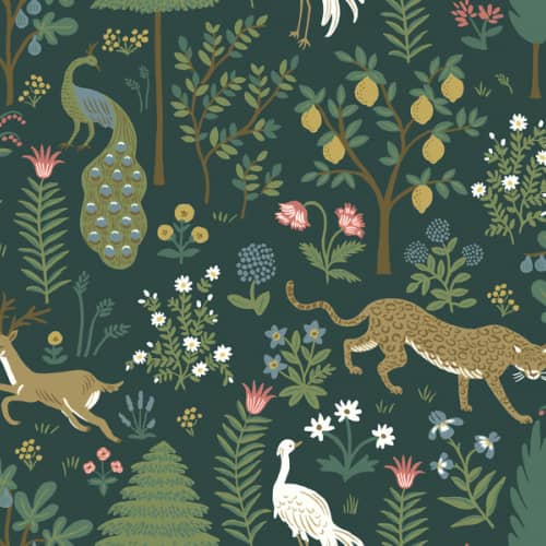 Tapeta zaprojektowana przez znakomitą i cenioną  ilustratorkę Annę Bond załozycielkę marki RIFLE PAPER CO, która w kolaboracji z amerykańskim producentem York Wallcoverings stworzyła piękną kolekcję tapet. Urocza i zjawiskowa tapeta w pięknych nasyconych głębokich barwach. Piekny wzór przedstawiający roślinność, wśród której znajduje się zwierzyna. Ptaki dzikie koty, sarny.
