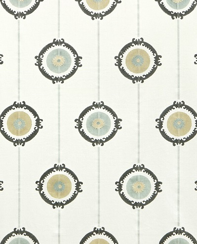 Pobierz teksturęNiewykła tkanina wykonana w indiach z dbałościa o najwieksze szczegóły. tkanina z kolekcji Olivii Bard Love Peculiar. Jnspiracja do powstania tego wzoru była bogata dekoracja tybetańskich mandali, lamp modlitewnych oraz malowideł ściennch, które znajdują się w pałacu Potala w Lahsie. Ten haftowany nadruk symetrycznie rozkłada się na gładkiej teksturze. Wzór jest linearny symetrycznie rozmieszczone "bombki" układają sie w harmonijny print.