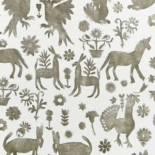 Przepiękna tkanina z kolekcji Love Peculiar projektu Olivii Bard. Finezyjny, uderzający wzór zainspirowany jest tradycyjnymi mitologicznymi stworzeniami. Przypomina ręcznie wykonane rzeżby oraz prymitywne indyjskie "odciski" z okolic radżastanu. Wzór produkowany jest cyfrowo z dbałościa o najdrobniejszy szczegół. Materiał świetnie sprawdzi się zarówno w aranżacji pokoi dziecięcych jak i w innych przestrzeniach. Doda wnętrzom lekkości i świeżośći. Jasne pastelowe kolory optycznie powiększą pomieszczenie. Interesujący efekt uzyskamy jesli uszyjemy w tego produktu zasłony. Tkanina swoje zastosowanie znajdzie również do obicia i tapicerowania mebli.