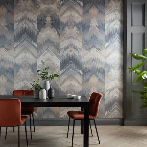 Niezwykły mural z kolekcji  Wallcoverings 1838  przedstawia dużą, cieniowaną jodełkę, układającą się w szerokie pasy.  Odnosimy wrażenie, że patrzymy na niebiesko - szary, lekko zamglony obraz z delikatnym połyskiem. Motyw idealny dla lubiących klasykę.  Cała kolekcja łączy w sobie klasykę z nowoczesnością i doskonałą jakością wykonania. Są tu duże, marskie kwiaty, akwarelowe pejzaże i wyraziste tropiki. Bogatą kolorystykę - czerwienie, błękity czy zielenie, dodatkowo uwypukla strutura płótna. Kolekcja zaspokoi najbardziej wyrafinowane gusta i nada każdemu wnętrzu niepowtarzalnego charakteru.